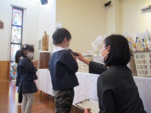 毎月1回、年長児はお御堂で神父様から神さまのお話をしていただくのですが、この日のお話は、年長児の子どもたちにとっても、特別なものになりました。