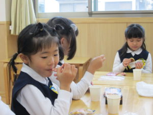 そして幼稚園に帰ってお楽しみのおやつタイム!