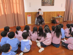 そんな子どもたちが本物の英語に触れられるよう、スコット英語アカデミーのスコット先生に年長児は英語を教えてもらっています。