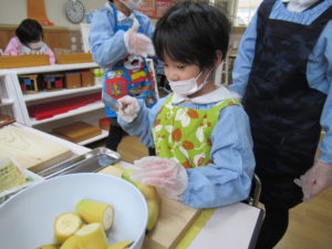 前日からお料理活動をとても楽しみにしていた年長さん。