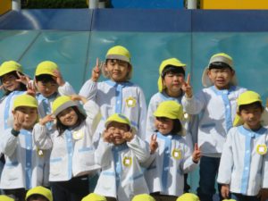 雲一つない青空の下、みんなでお別れ遠足に行きました。