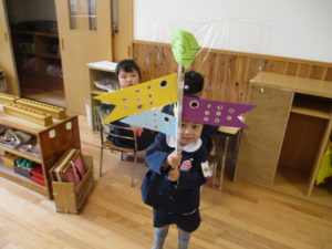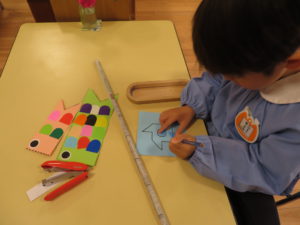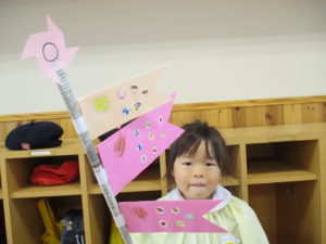 そして、子どもたちは自分だけのこいのぼりを作る制作も楽しんでいます。
