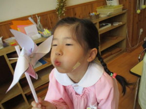 ふーっと吹くと風車が回る様子は不思議で面白いようで何度も何度も楽しむ姿がありました。