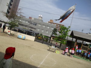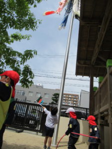 今、園庭には大きな大きなこいのぼりが泳いでいます。