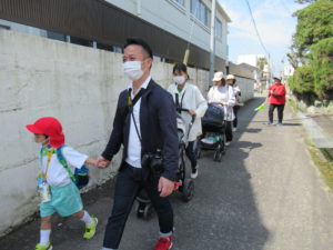 お家の人と手を繋いで頑張って園まで歩いて帰りました。