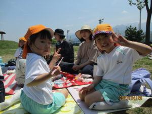 大好きなお友達とシートを広げてお弁当を食べました。