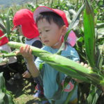 実っているスイートコーンを見て、年少児さんも夢中に一生懸命に採る姿が見られました。発見や感動がたくさんありました。