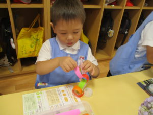 1つ増えるごとに”3つできた””4つになったよ”と数を数えて楽しみます。