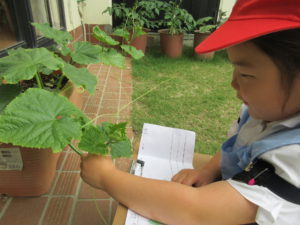 「きょうは、はっぱがすこしおおきくなってた」