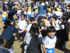 「やったー!」と喜ぶ声や「もう、いっかい!」と悔しい声と、とても盛り上がった「つなひき」になりました。