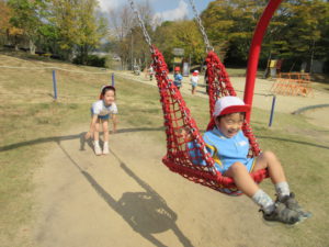 バスで公園に着くと、楽しみにしていた子どもたちはさっそく遊び始めました。