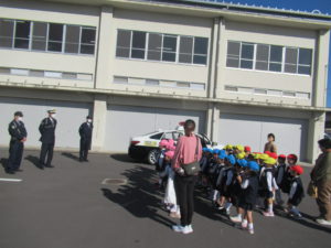消防署では消防車、そして実際に消化訓練、救助訓練、