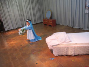 降誕劇では、神様が生まれた日の事を全員で演じます。劇をするにあたって一人一人が役の意味や、神様に感謝の気持ちが伝わるにはどのように演じたらいいかを考え、練習してきました。