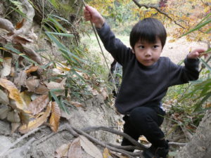 「前はヘビはがおったけどきょうはおるかな?」「どんぐりいっぱい森で見つけよう」