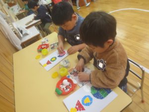 卒園制作「教会モザイク」も始まり少しずつ頑張っています。
