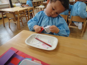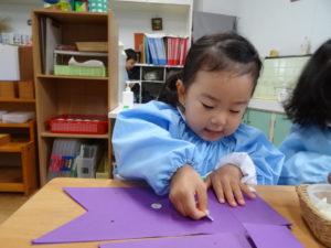 年中児さんは「上手に切れた!」「目丸く切るの難しいなー」