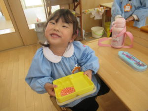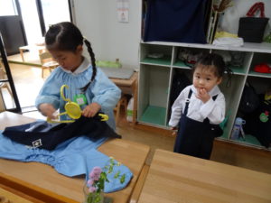 1つ大きくなった年中さん。今までは手伝ってもらうことの多かった人も、今度は小さい人をお手伝いしてくれるように。