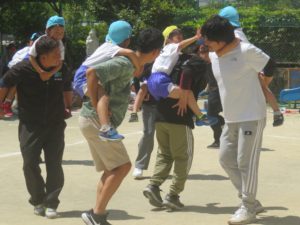 おうちの人とクラス対抗おんぶで騎馬戦!