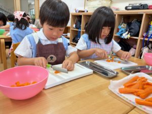 年中児・年長児が自分たちでカレーを作ります。