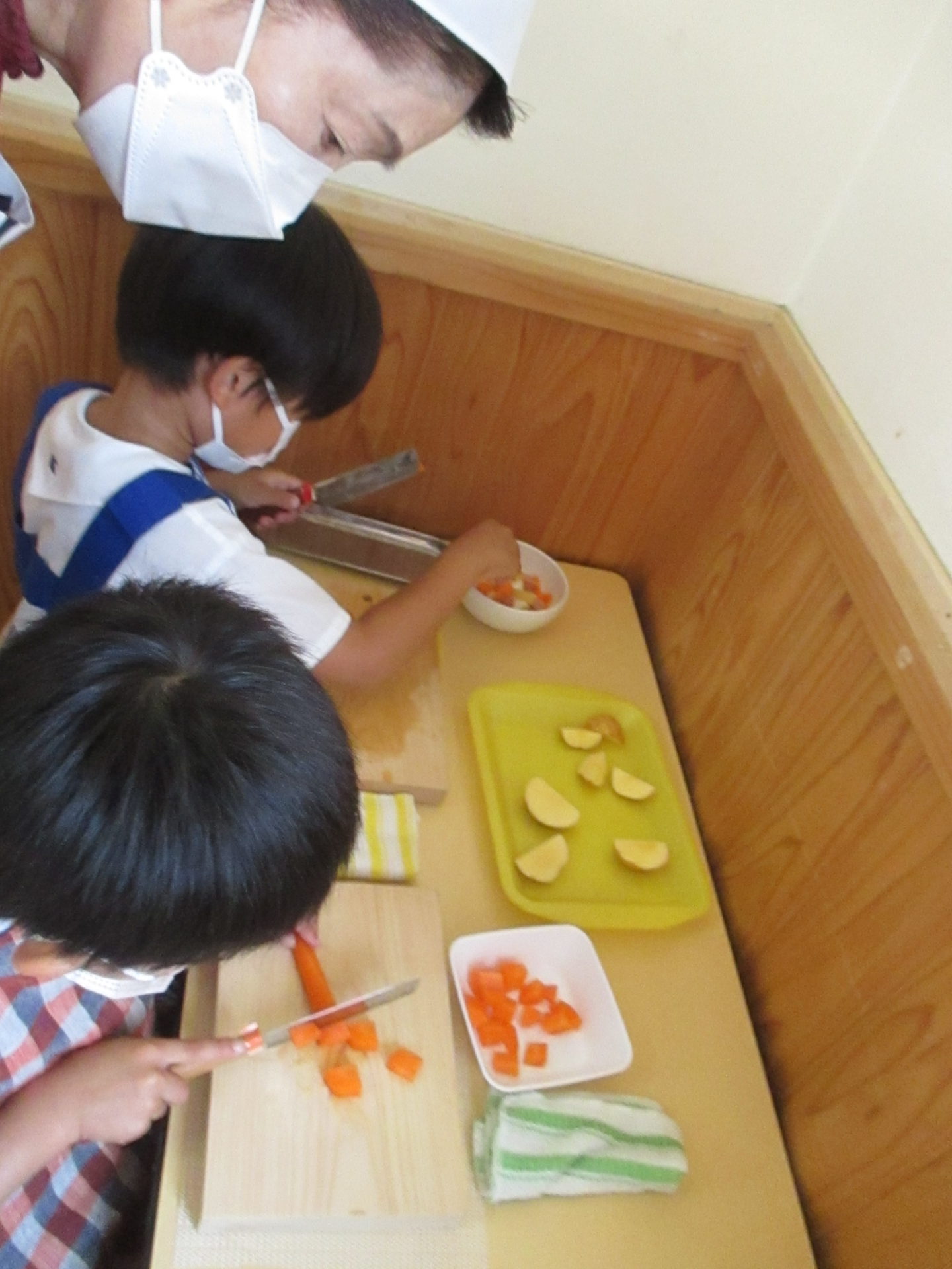 7月の上旬に年長児と、玉津公民館から来られたお料理スタッフの方たちと