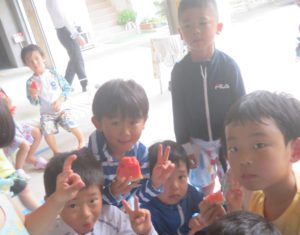 終業式を終えた翌日、昼から年長児が集まり夕涼み会を行いました。
