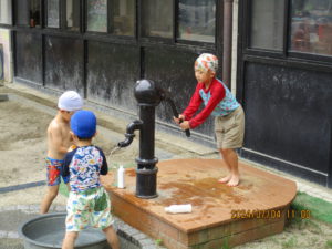 未就園児の方々のみみちゃん教室でも水遊びを行いました。