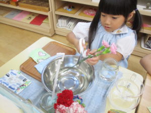 花の水切りをしたり