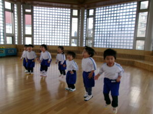 1月29日(水)、てんし組の初めての運動遊びがありました。