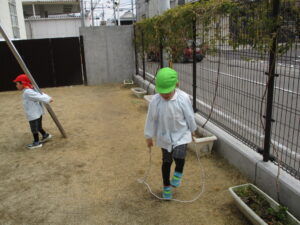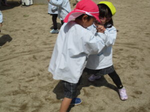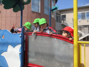 午後から、お日様が出て、園庭で友達と一緒に元気いっぱい遊びました。