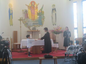 感謝の歌が教会に響き渡り、卒園式のはじまりです。
