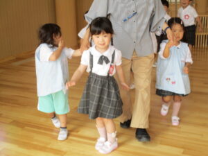 「楽しかった!」と子どもたちがホールから部屋へ帰りました。