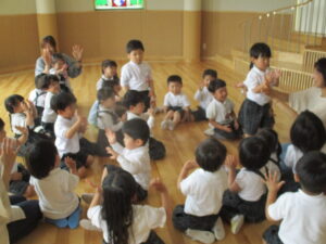 松本真紀先生と一緒に、リズムに合わせて身体を動かして、「楽しかった!」とにこにこ笑顔でした。