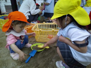 戸外では幼児さんとたくさん関わりながら元気に遊んでいます。