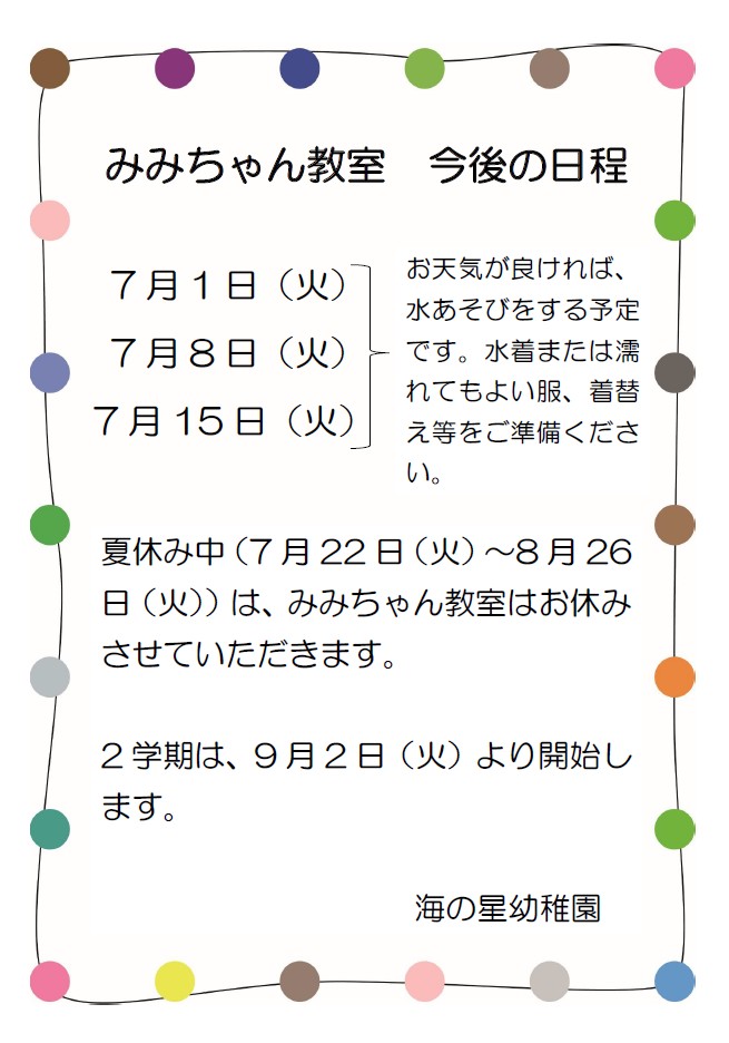 みみちゃん教室 今後の日程