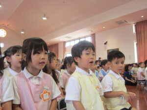 子どもたちは、知っている曲に大喜びで、大合唱でした。