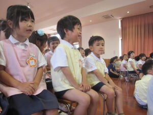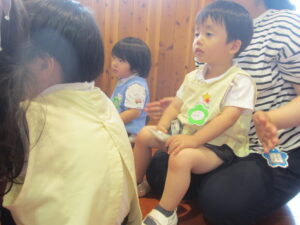 この曲は、”夏の激しい嵐の訪れ”を表しているということだそうで、曲の雰囲気を感じたのか、2歳のつぼみ組さんもすごく真剣に聴いていました。