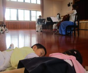 演奏の途中で、心地がよかったのか、横になり、リラックスしながら聴いている子もいました。
