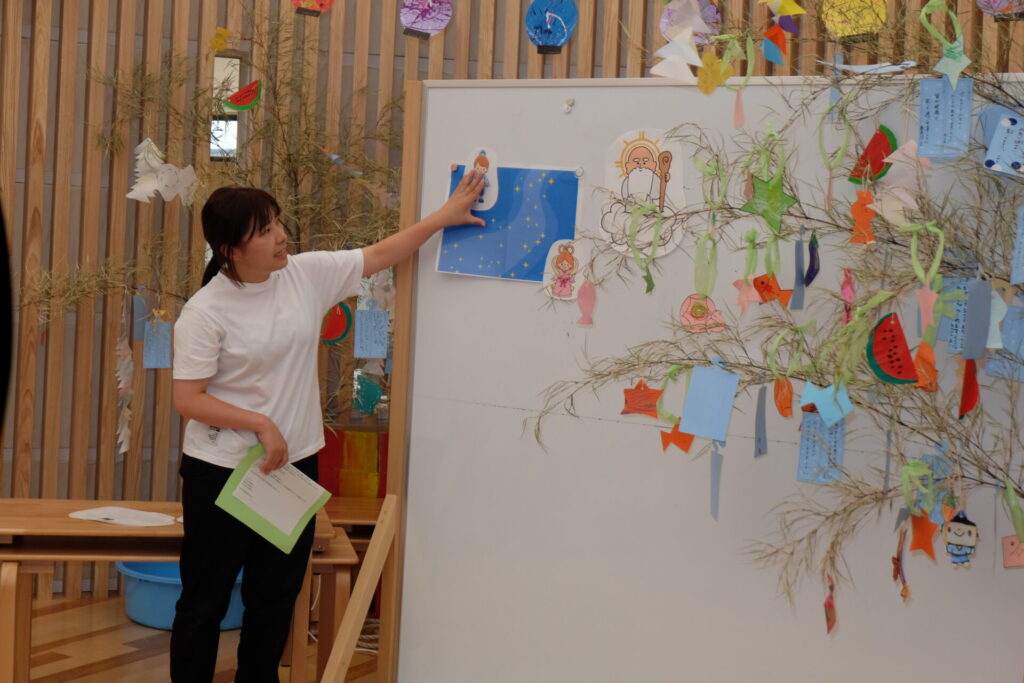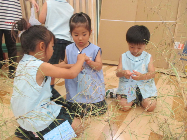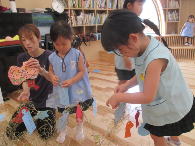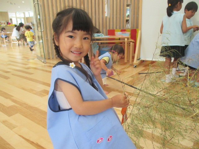 友達同士で協力しながら短冊を飾ったり 「お願い何にしたー?」と見せ合いっこしたり楽しんでいます( ^ω^ )