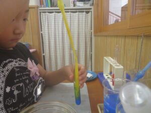 入れる色水の量でもできる色の濃さが変わることに気付いた子どもたち。