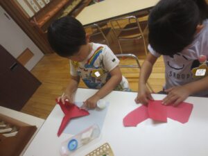 のりしろにのりを付け立体を組み立てていきます。