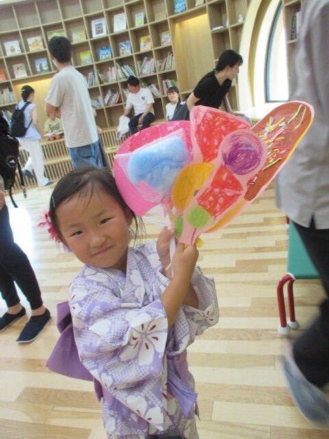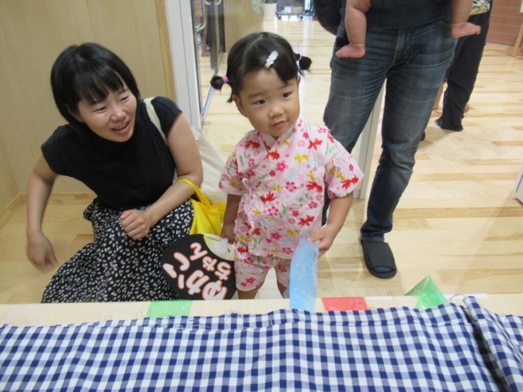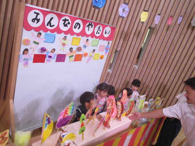 作品展を兼ねており、子どもたちの作品や絵で賑やかに飾り付けた中、親子で夏祭りを楽しむ子どもたちも大好きな行事です( ^ω^ )