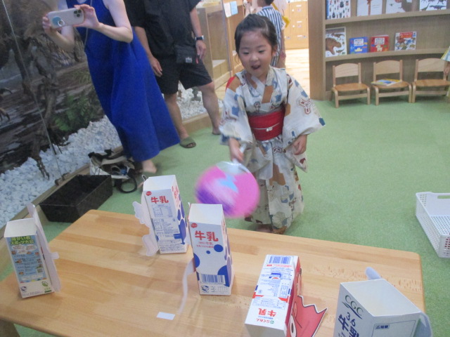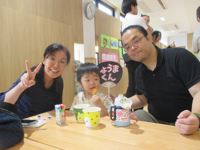 お家の方と一緒に輪投げやくじ引きなどのゲームに挑戦したり、フリースペースで友達ファミリーとの食事を楽しんだりしました。