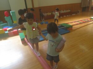 新入園児さんの手を優しく握る年少さんの姿も見られています。ありがとう♪