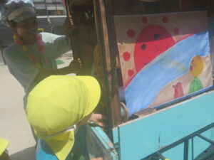 最後にくるくる回る布芝居の裏側を見せてもらいました。