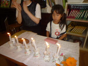 ロウソクに火をともし