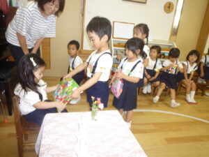 園からのお祝いを手渡しました。