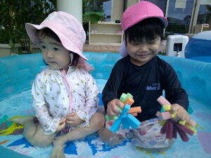 今日は二人でプール🌼貸し切りみたいできもちいいね~♪