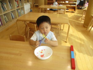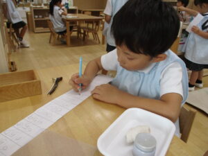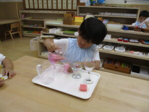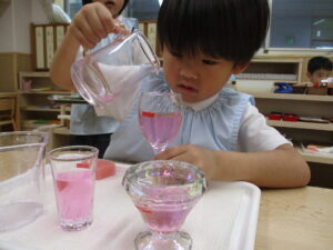 量線の空け移し・・・ゆっくりとこぼさないように注ぎます。