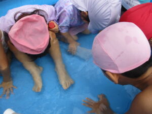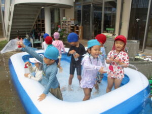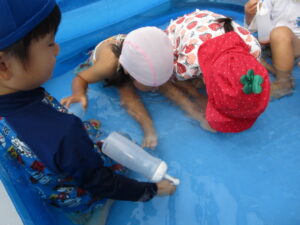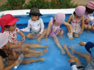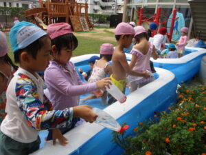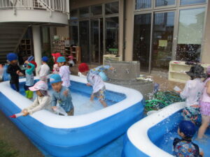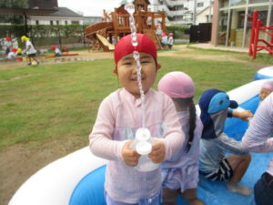 先生と水のかけっこ面白い!大盛り上がりです!!