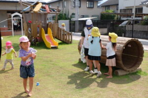 笑顔が素敵で優しいお姉さん先生に自分たちからどんどん声をかけて遊びに誘う子どもたち!